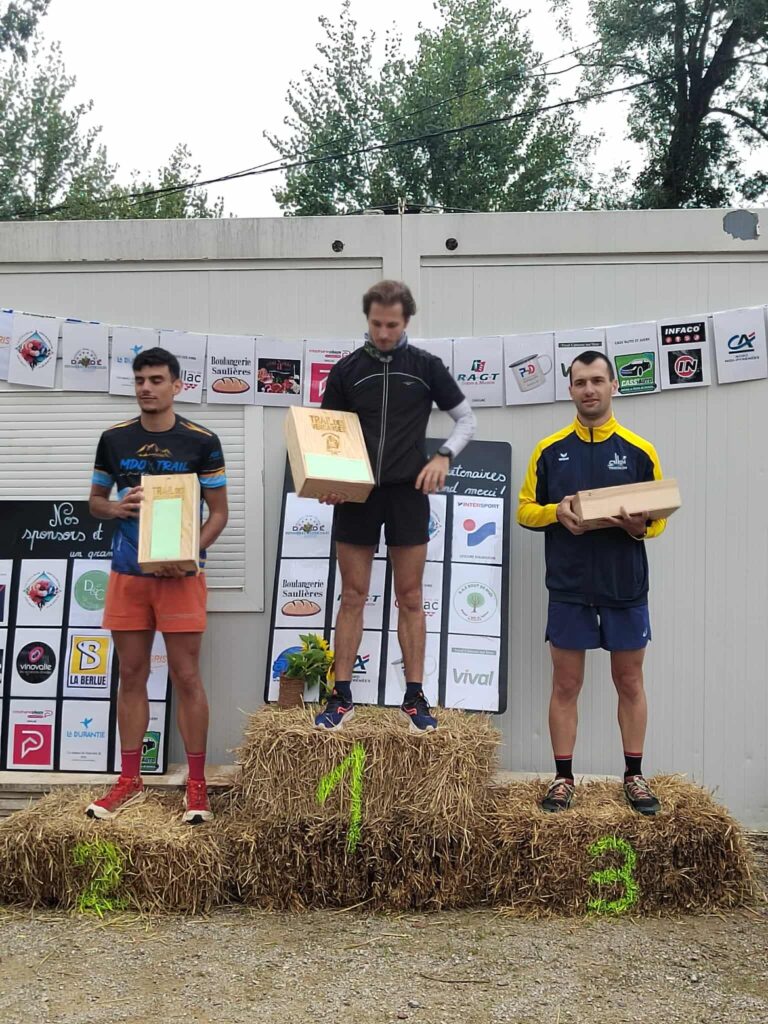 Victoire d’Olivier Marquis au trail des vendanges de Cahuzac sur vère dans le cadre de sa préparation aux festival des templiers à Millau fin Octobre.